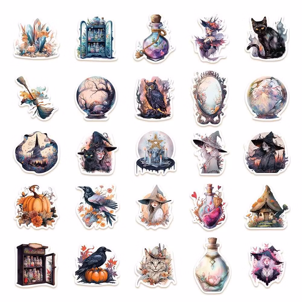 Vintage witch mix, Klistermärken av vinyl (10st)