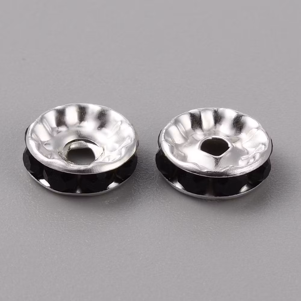 Strassrondell, 10mm, rak, grad A, silver med svart, blandmetall (20st)
