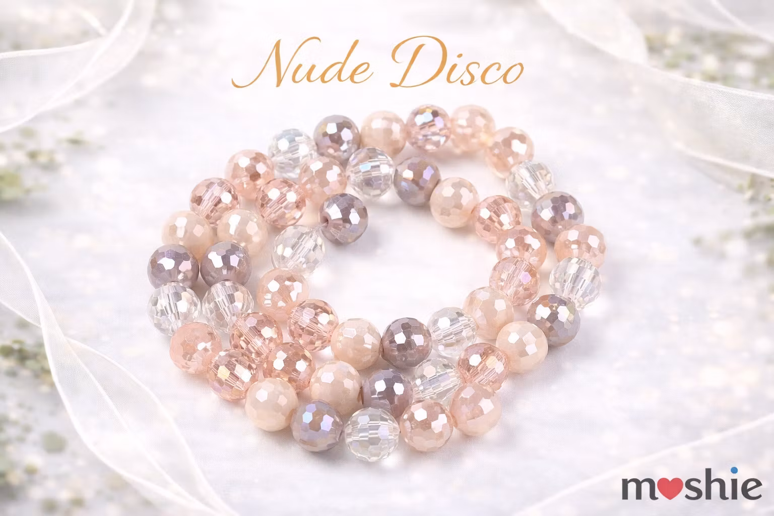 Fasetterade runda pärlor av glas 8mm Nude Disco 50st
