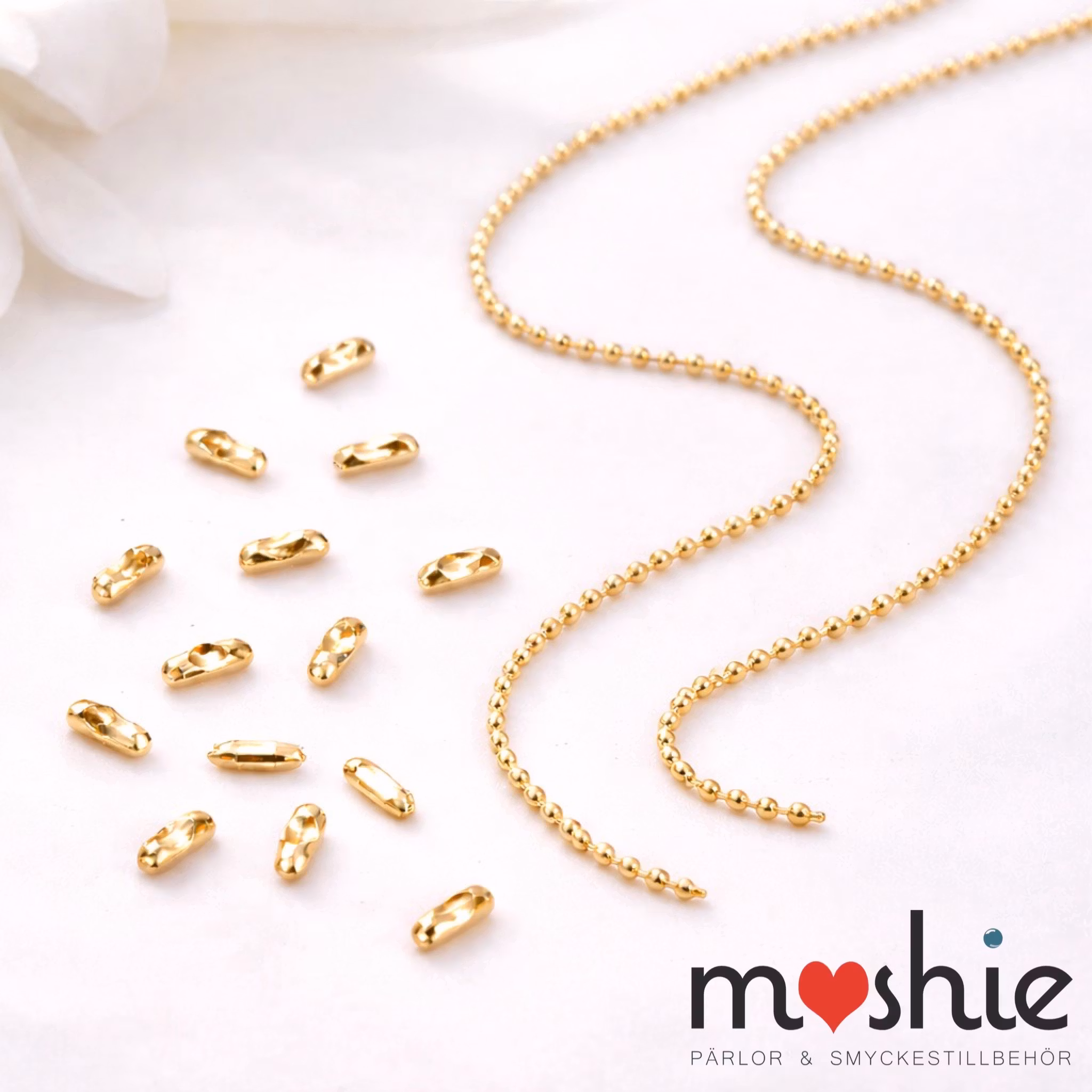 Enkel nickelfri kulkedja i guldfärgat järn, perfekt för nyckelringar, ID-brickor, hängen, halsband, dekorationer och kreativa DIY-projekt. Kulkedjan är lödd mellan kulorna för extra hållbarhet och levereras tillsammans med matchande kopplingslås.
