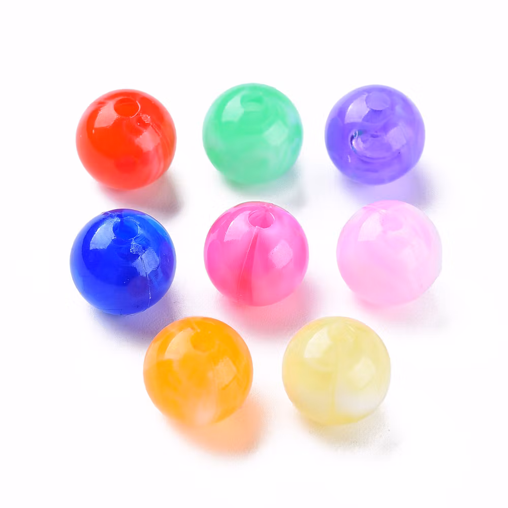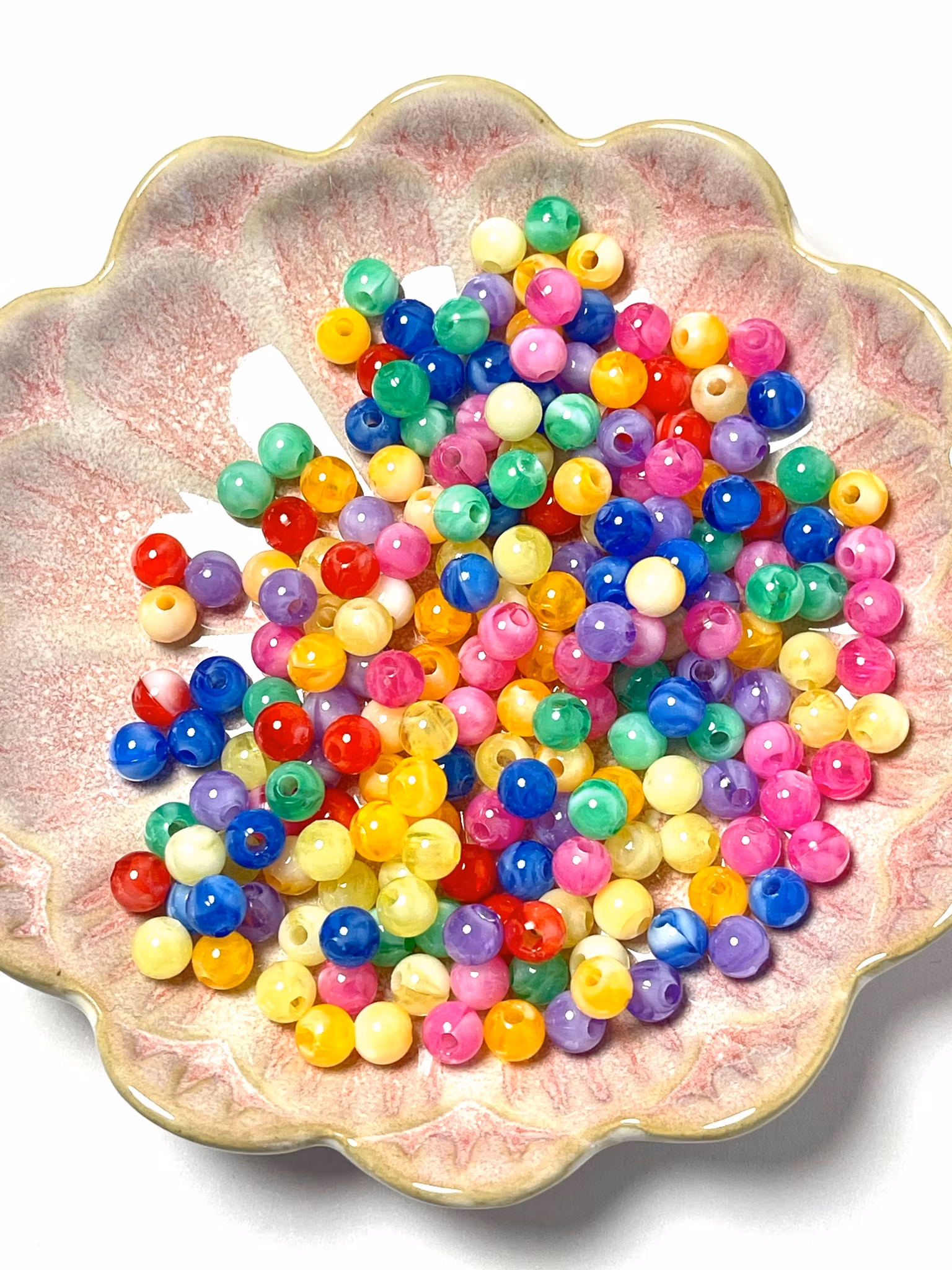 200st fina Runda akrylpärlor i ädelstensimitation. 6mm och hålet är 1.8mm. Mixade färger.