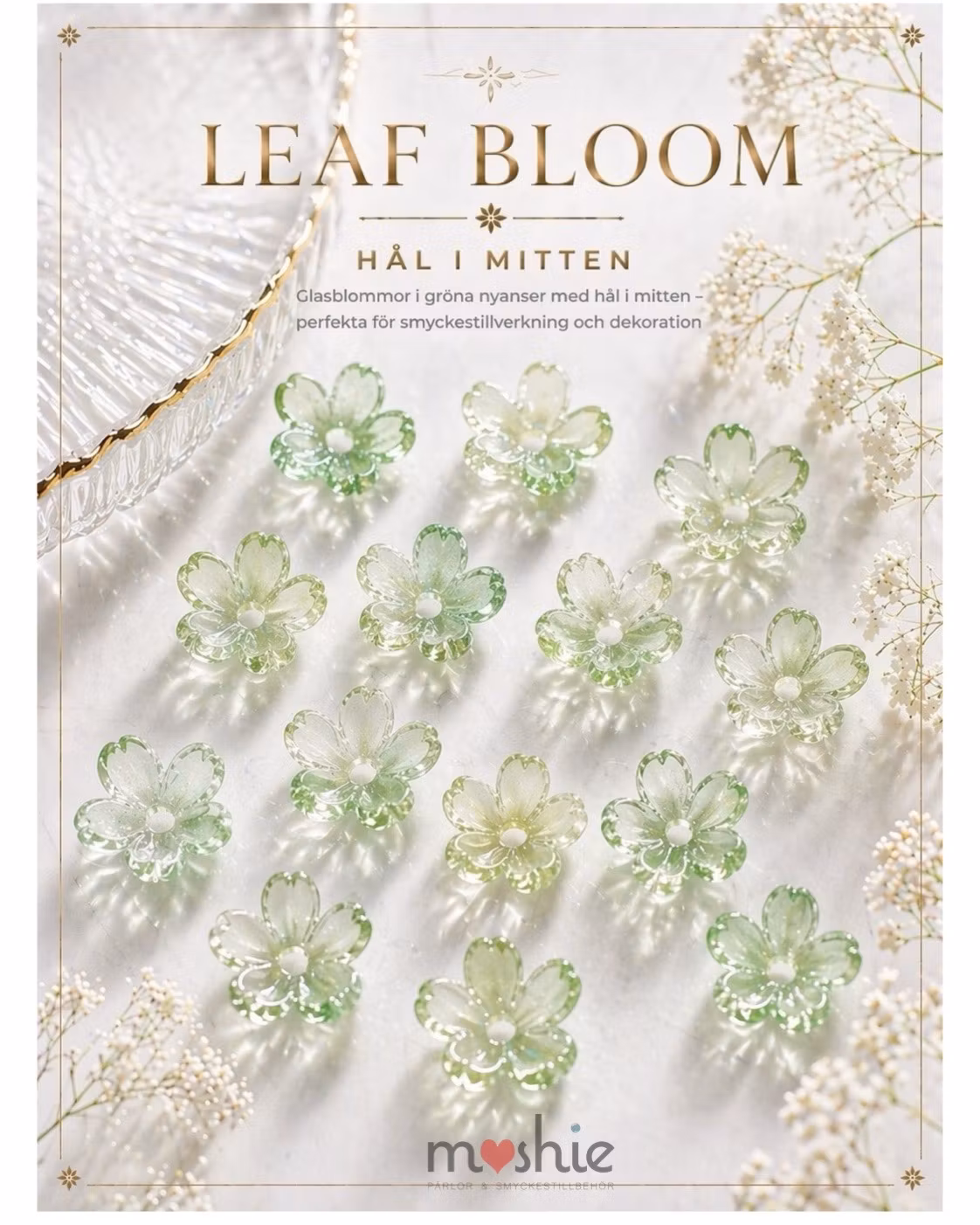 Blommor av glas 12mm hål i mitten Leaf Bloom 20st