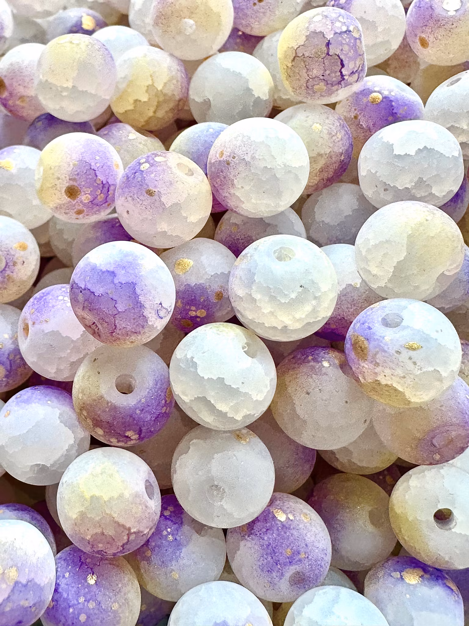 Helt magiska glaspärlor. Dovt krackelerade frostade med golddust. Ur moshies serie "universe". Dessa är i färgen easter. 10mm och hålet är 1,8mm. Njut av dessa magiska pärlor. Du kommer inte bli besviken!