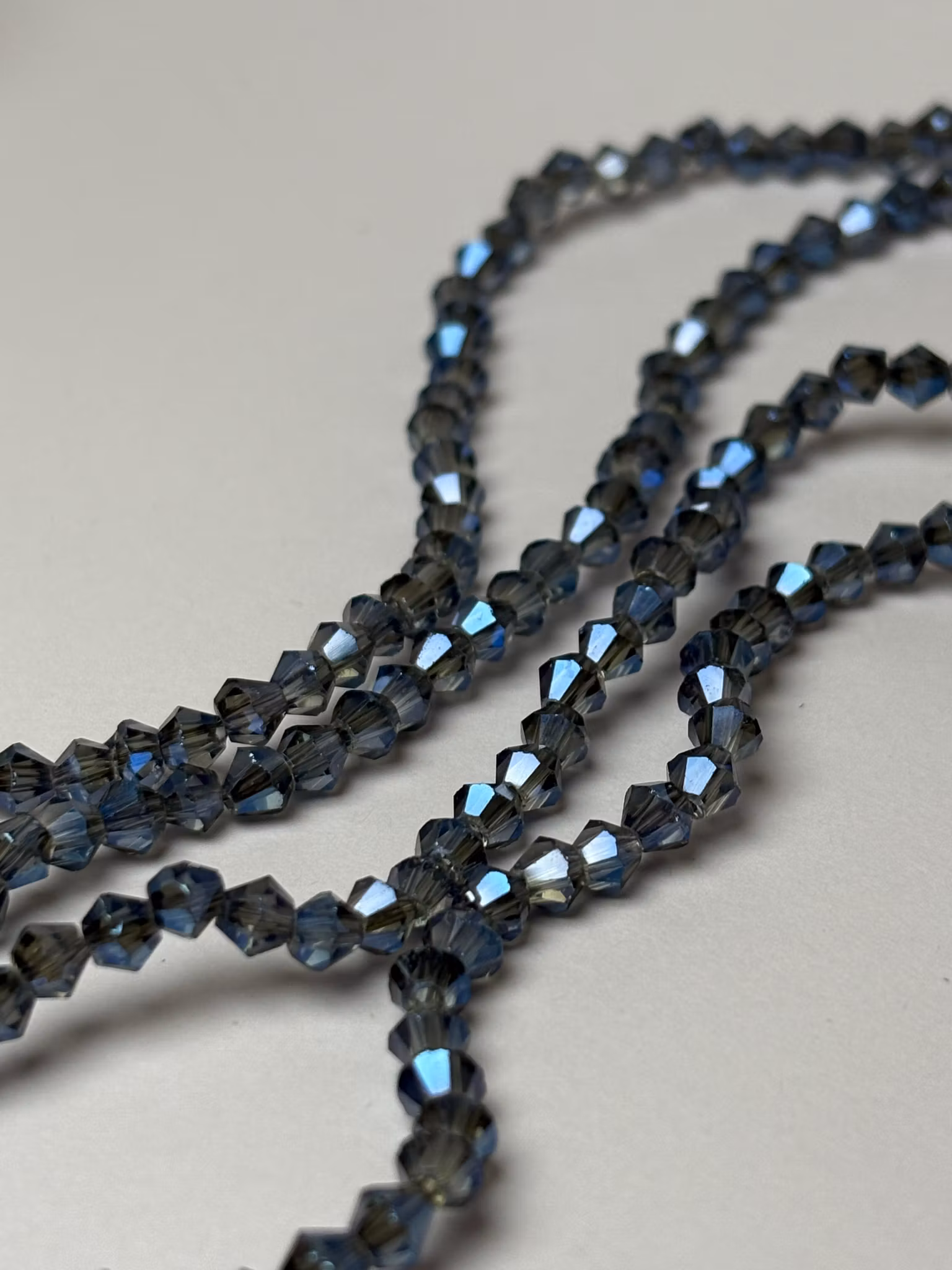 Sträng biconeslipade glaspärlor, Stormblå 4mm (ca 85st)