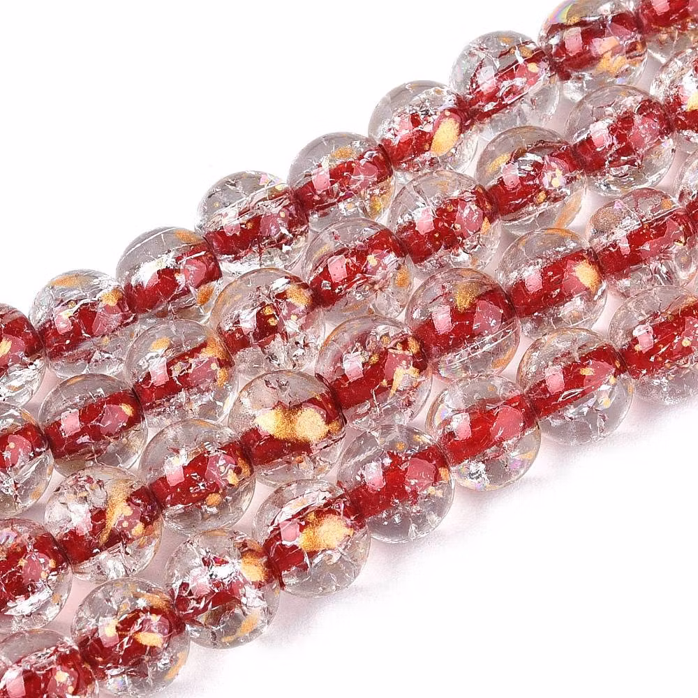 Sträng med glaspärlor ur vår serie med krackelerade glaspärlor med gold flakes och insidan fylld med en färgad rand.