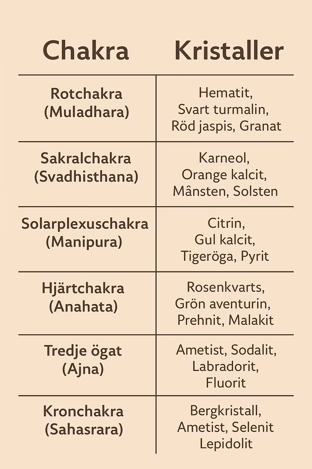 Se på bild 3 för mer info. På bild 4 ser du en beskrivning av vilka kristaller som symboliserar och stärker de olika chakran.