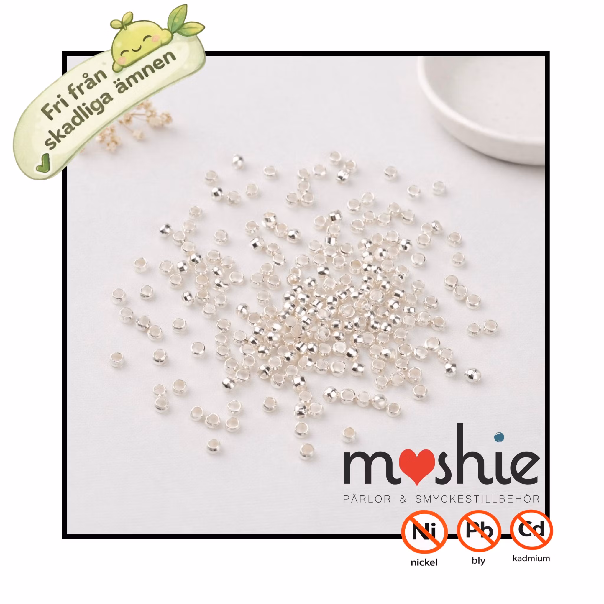 Små klämpärlor nickelfria av mässing silver 2x1.2mm 100st