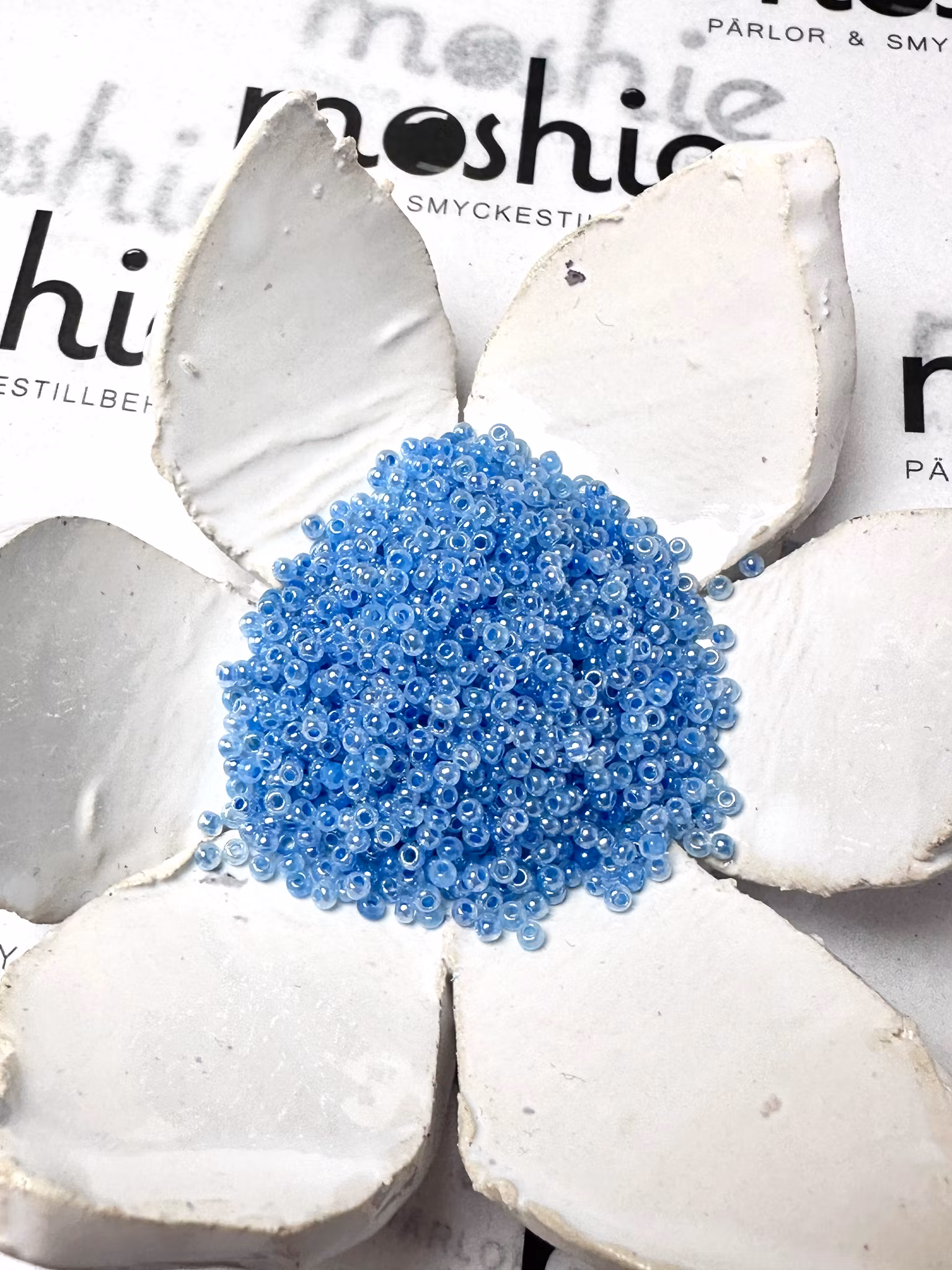 Seed beads av glas - jämna - skimrande ljusblå - 12/0 klass A - 2x1.5mm - 20g