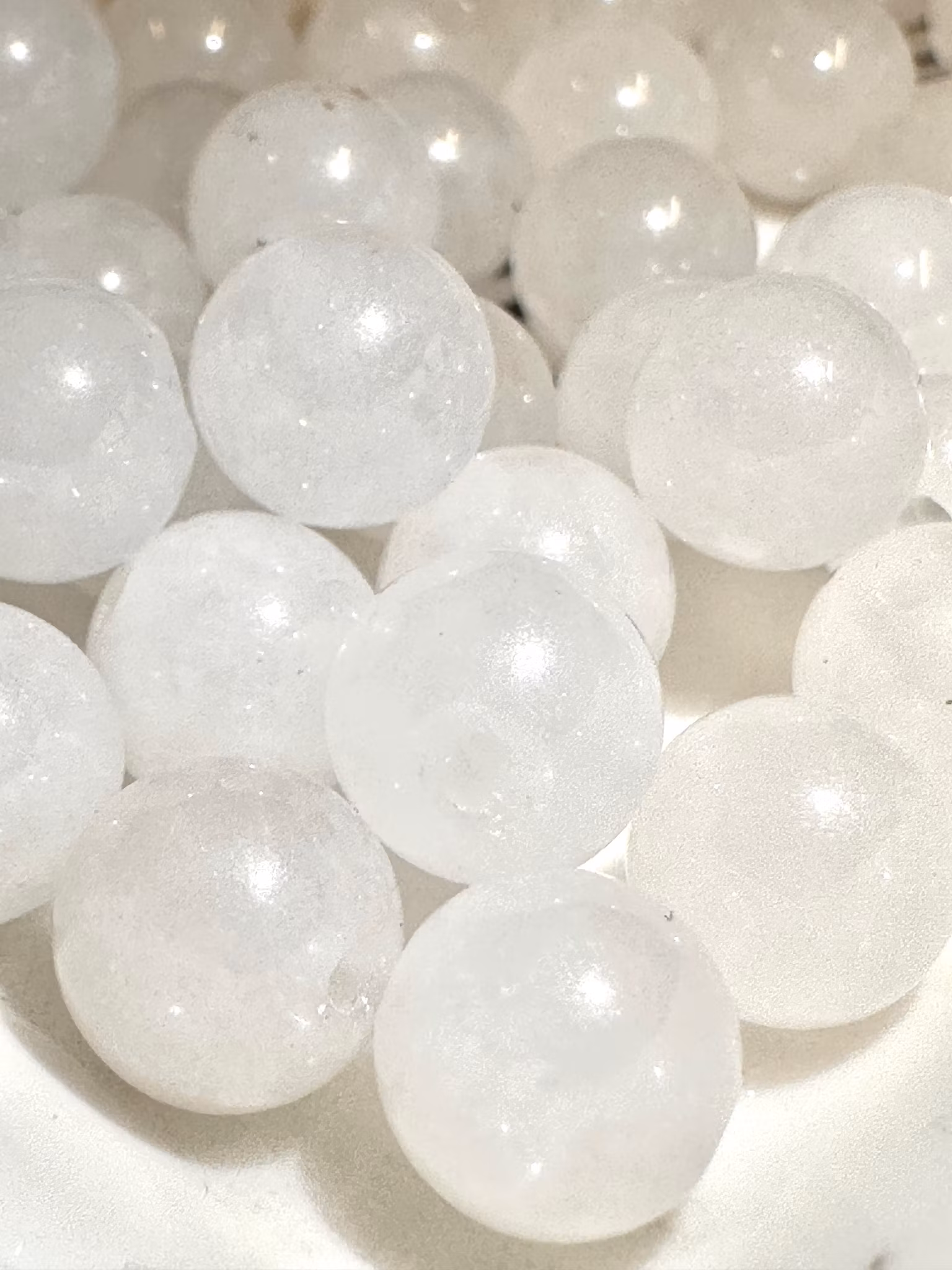Förpackning med naturlig vit jade. 8-9mm och hålet är 1mm. Ca 25st i förpackningen. Äkta kristall.