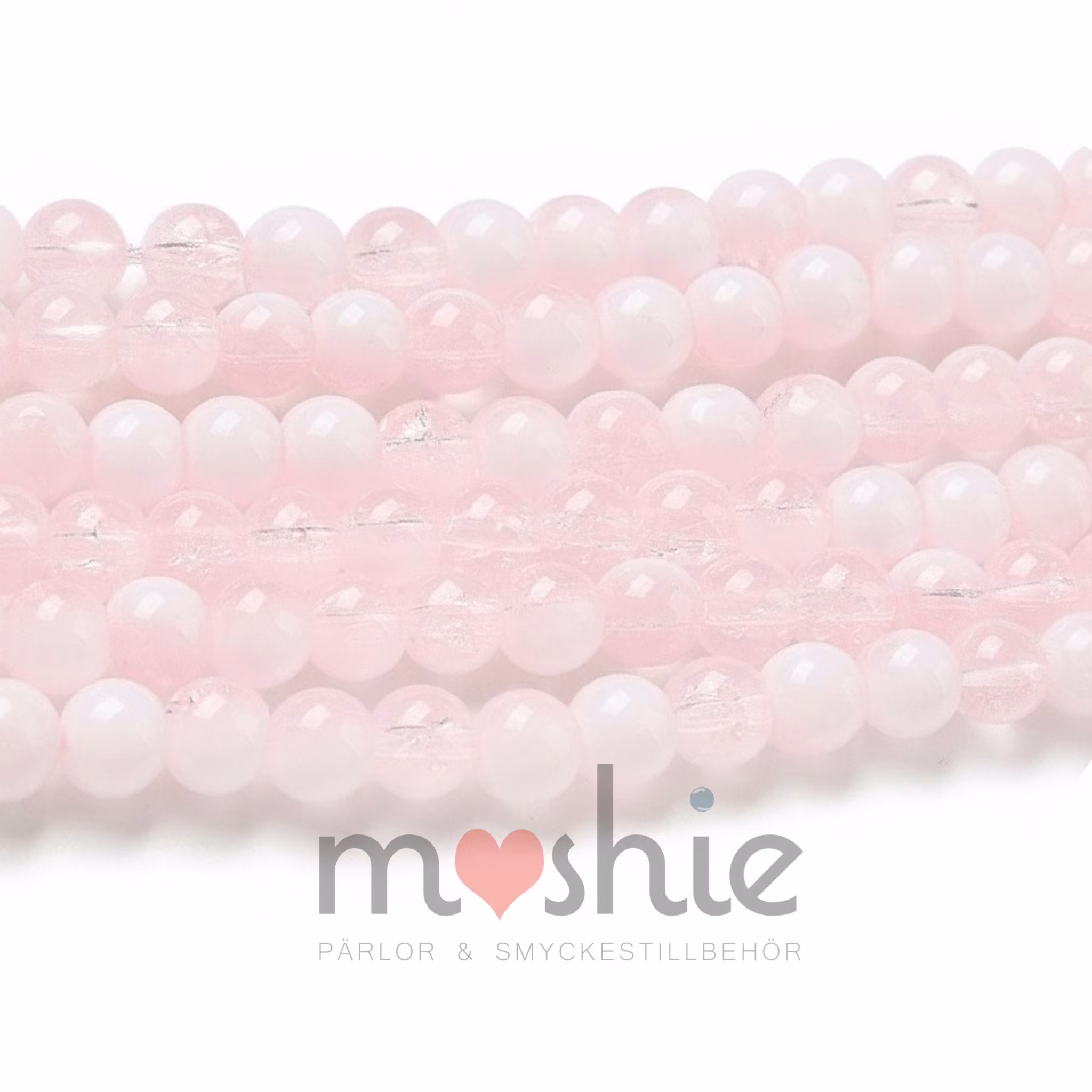 Sträng glaspärlor 4,5mm 215st Misty rose Night and day clear Crack