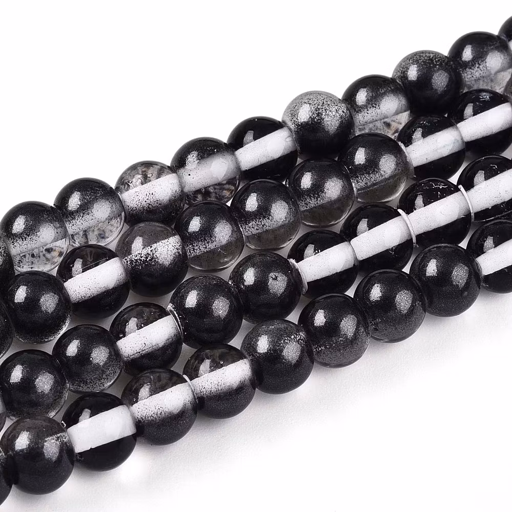 Sträng glaspärlor, night and day clear, svart, 10mm (85st)