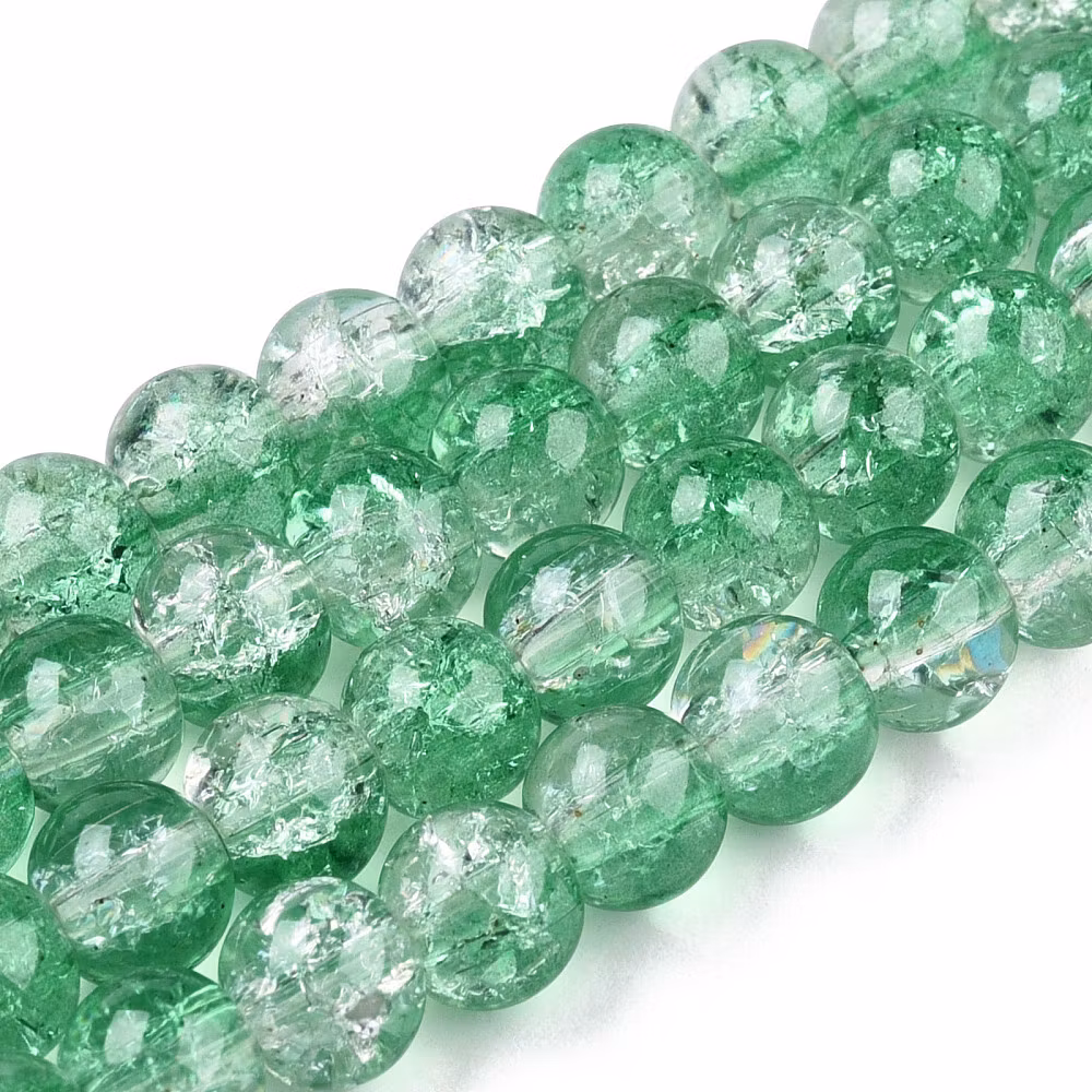 Sträng ”iced” Krackelerade glaspärlor, skog, 6mm (133st)