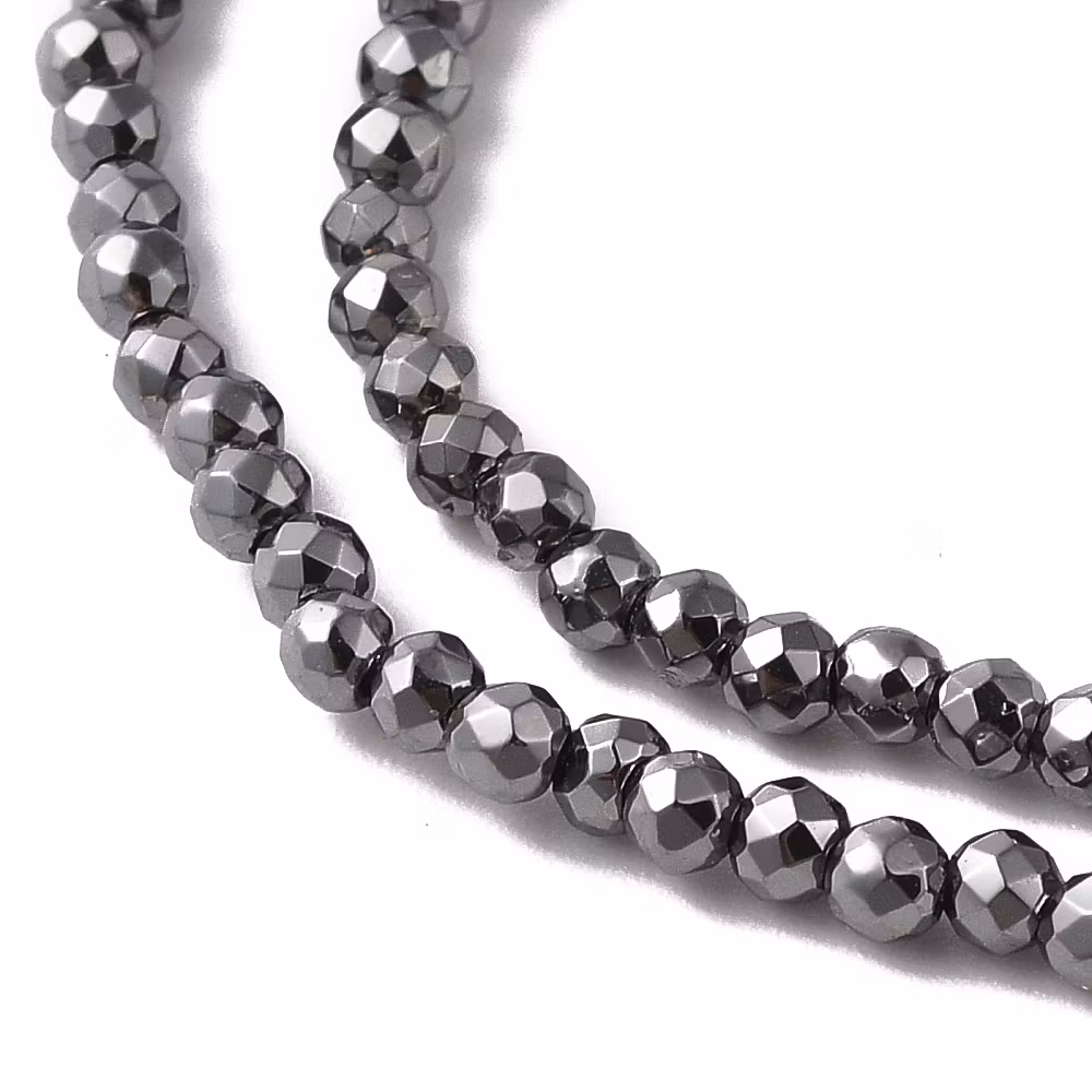 Fasetterade glaspärlor på sträng - 2 mm - gunmetal - 200st