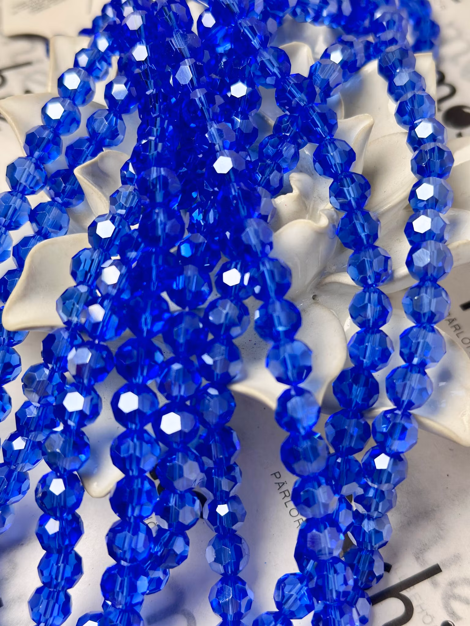 Sträng slipade runda glaspärlor, blue, 8mm (68st)