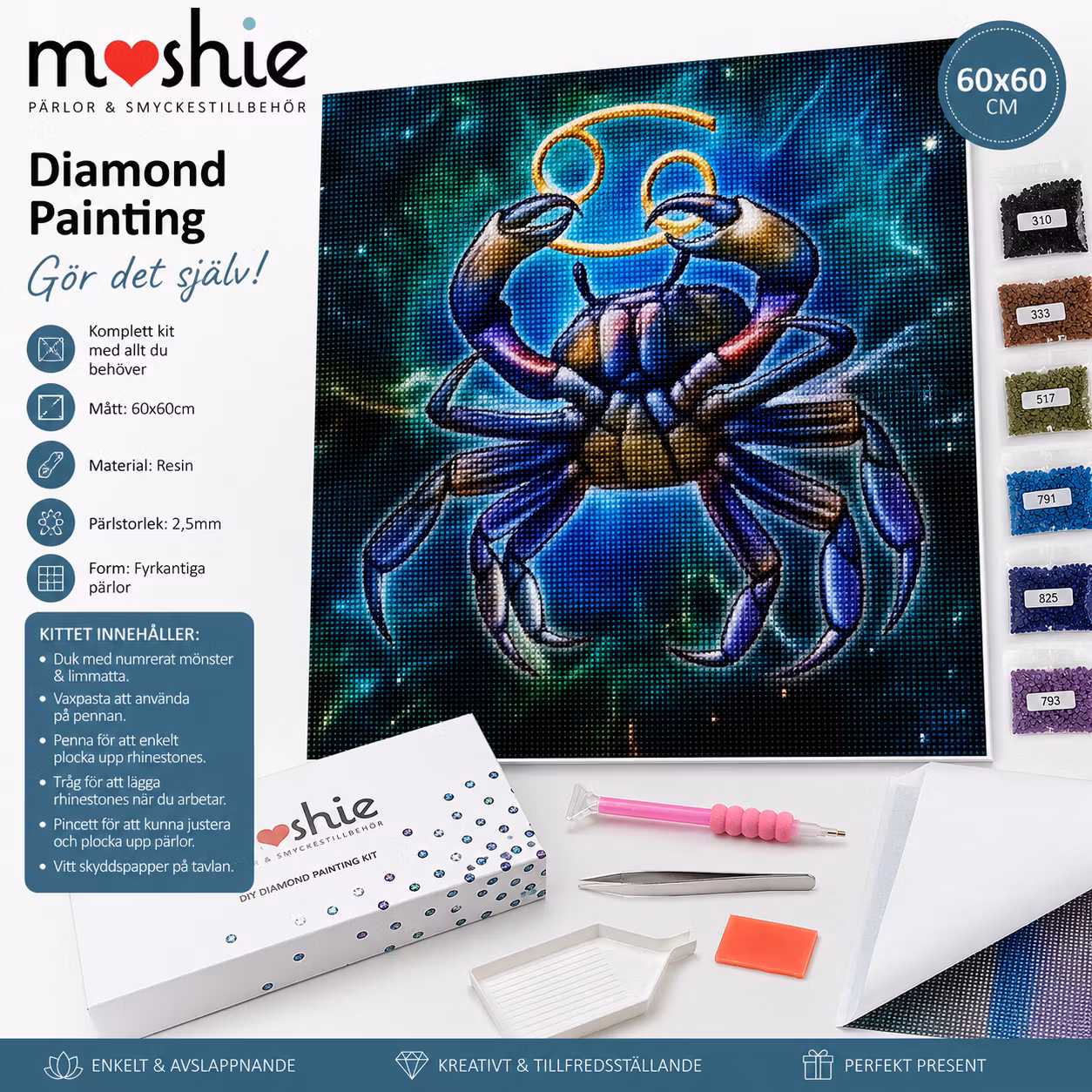 Diamond Painting 60x60 fyrkantiga stjärntecken kräftan DIY