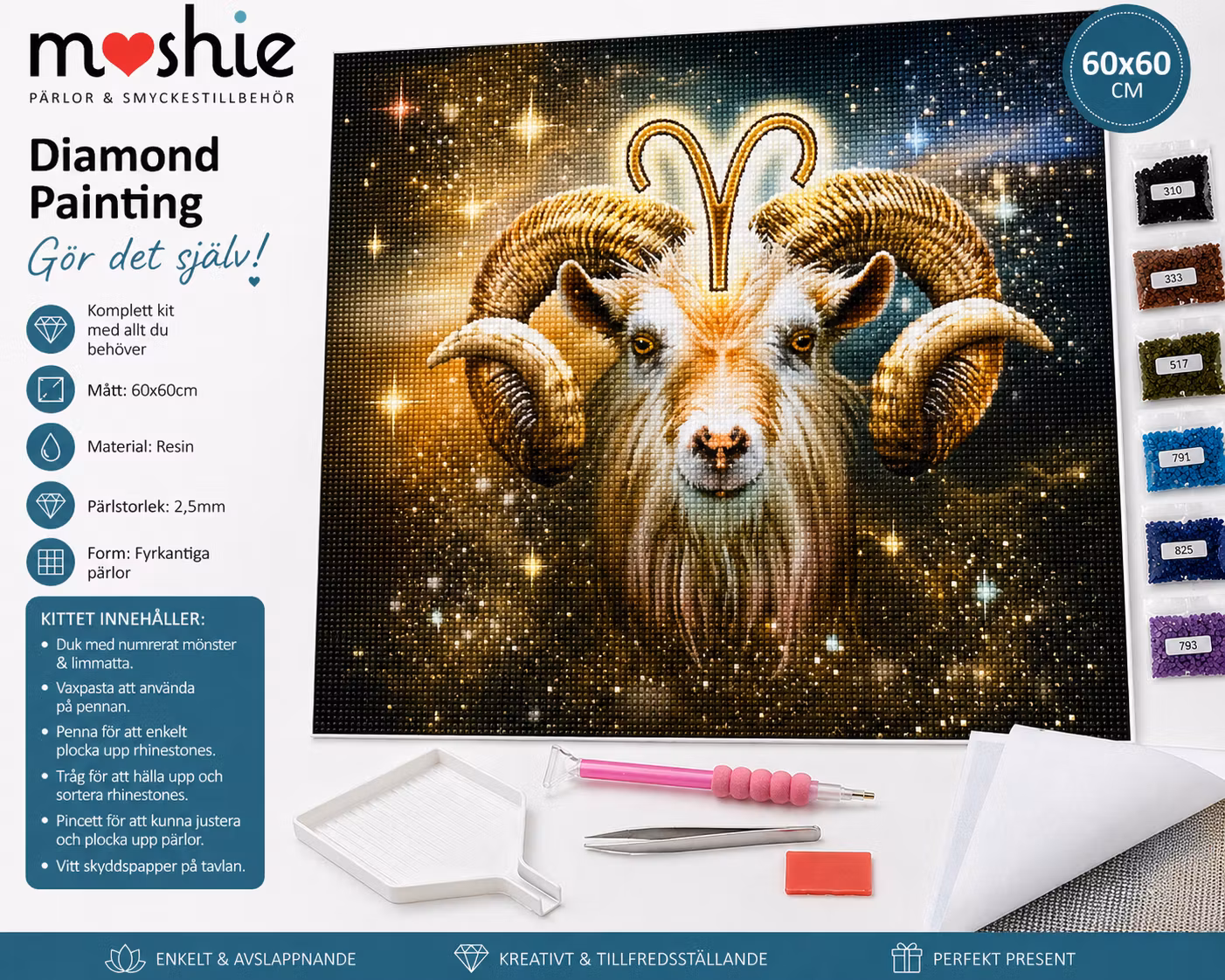 Diamond painting, 60x60cm, Väduren, stjärntecken, komplett kit, fyrkantiga