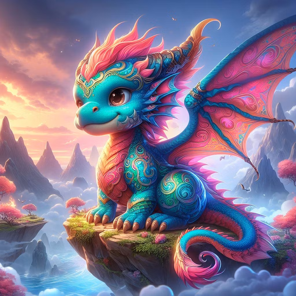 Painting by numbers, färgglad drake, 40x40cm, med trästomme.