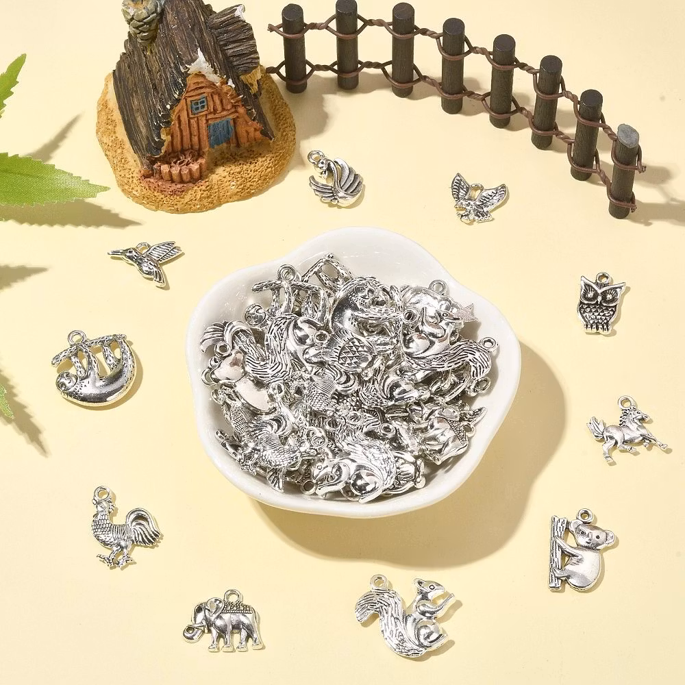 Berlocker av blandmetall, tema djur, antik silver (10st)